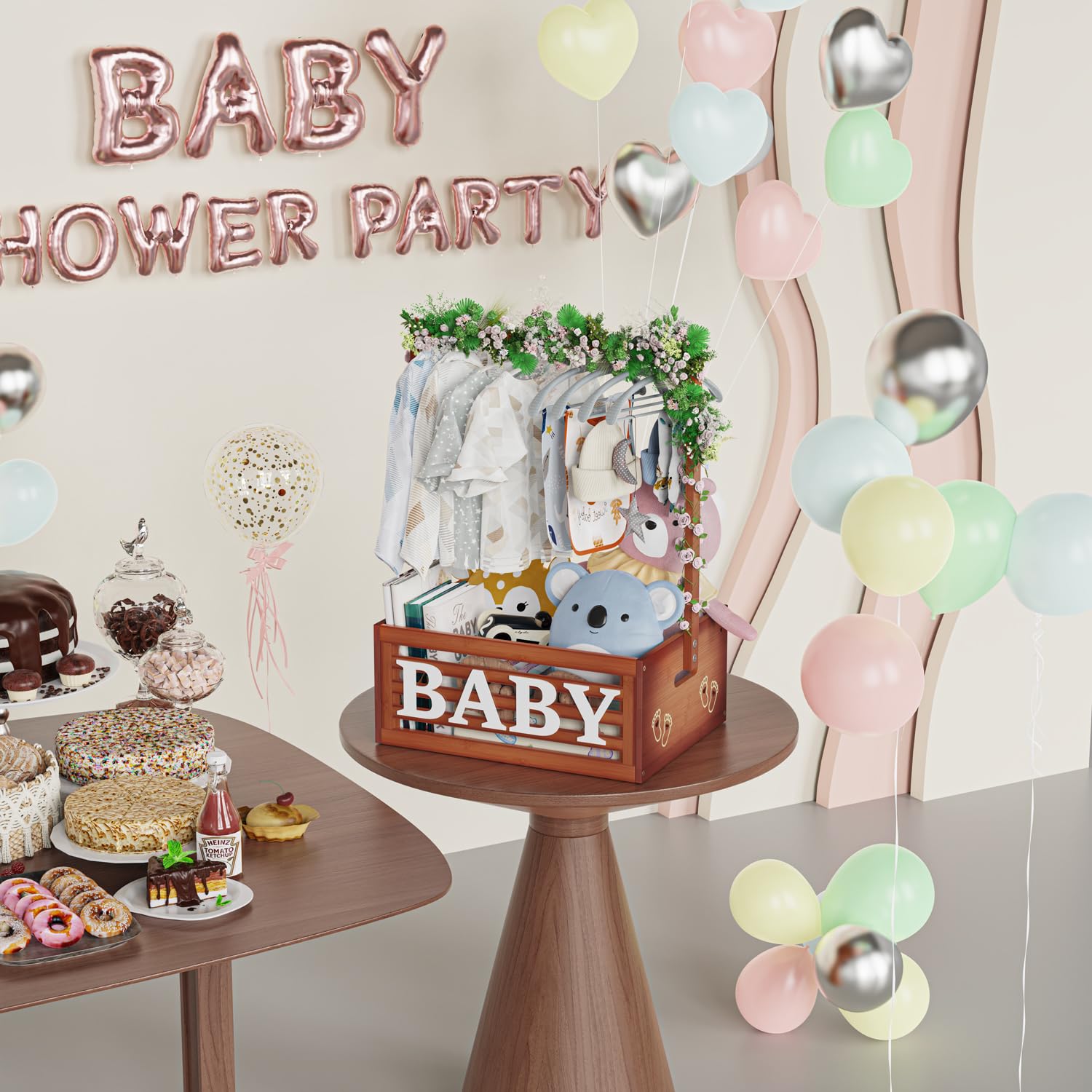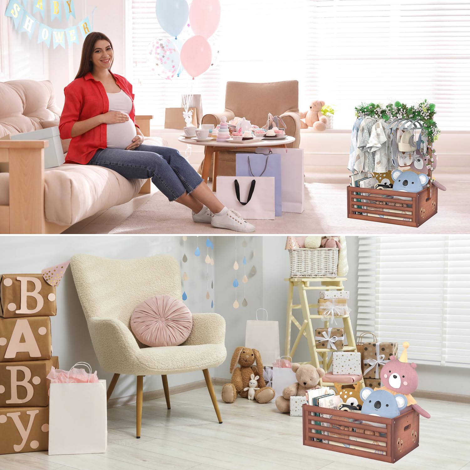 • Dual Function: This shower party basket with handle offers dual functionality of storage and hanging. Compared to other gift containers that only provide storage, our baby shower crate box comes with a spacious crate and hanging rack, enriching the display form, making it a practical and stylish choice