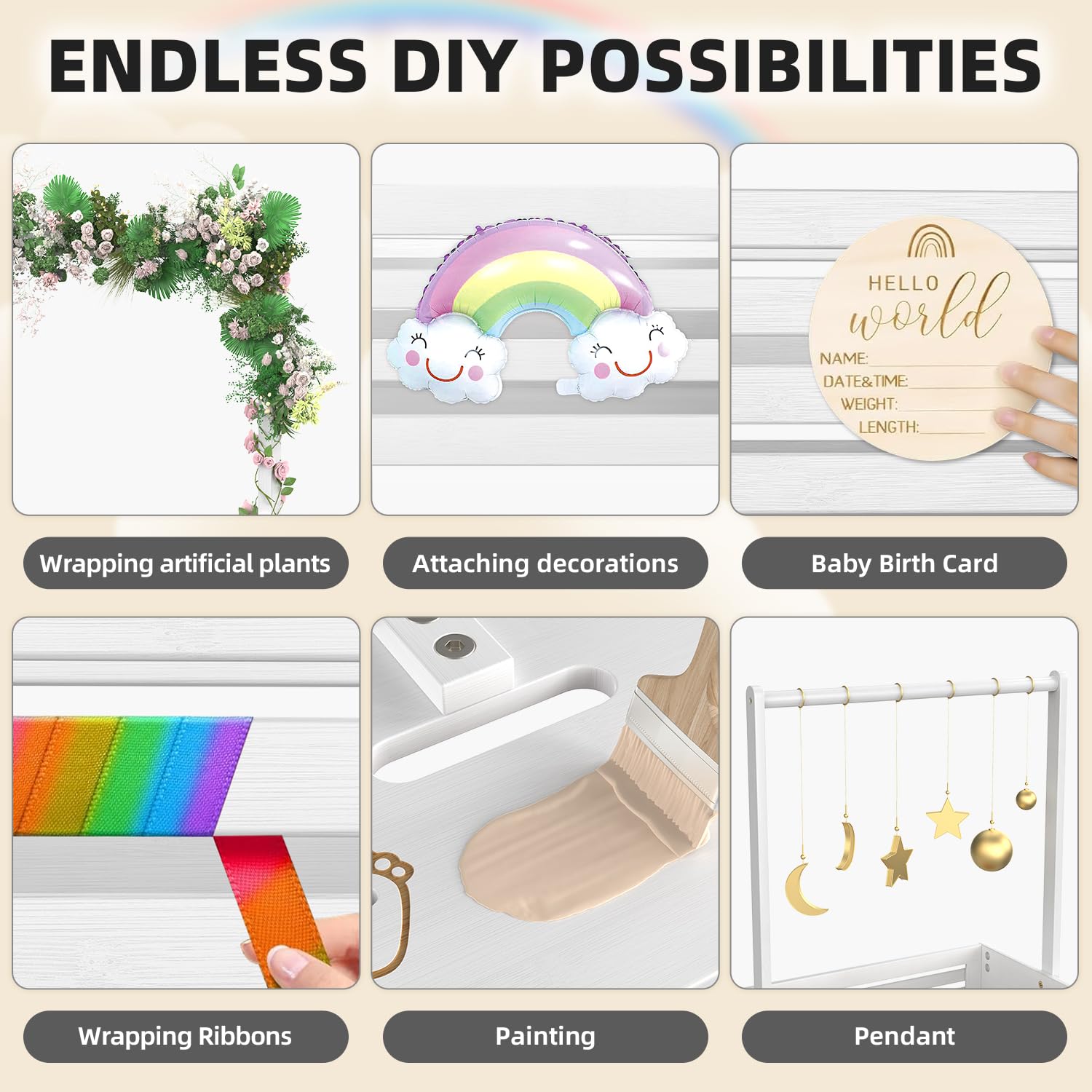 - Reliable Material: This baby shower crate with hangers bar for crafts and letters decorations are made of quality solid bamboo material, safe, sturdy and reliable, without any burr, won't hurt you and your little one's hands, and the bamboo panels on both sides are designed with baby feet hollow patterns, making it more unique. This baby gift basket is not only practical, but also a art