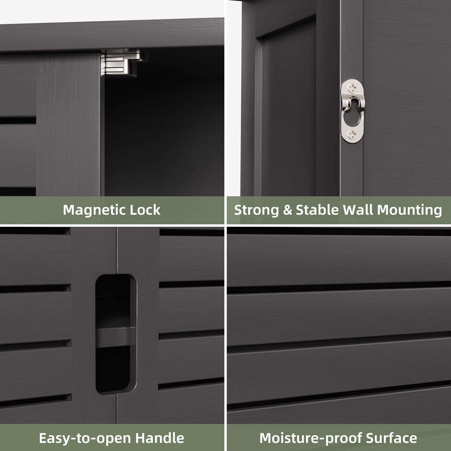 - Stable Wall Mounting - With 2 wall-mounting kits on the back, it can be mounted stably and you don’t need to worry that it will fall off the wall. The double doors are closed by a magnet lock, which prevents items from falling off and keeps your naughty cats out.